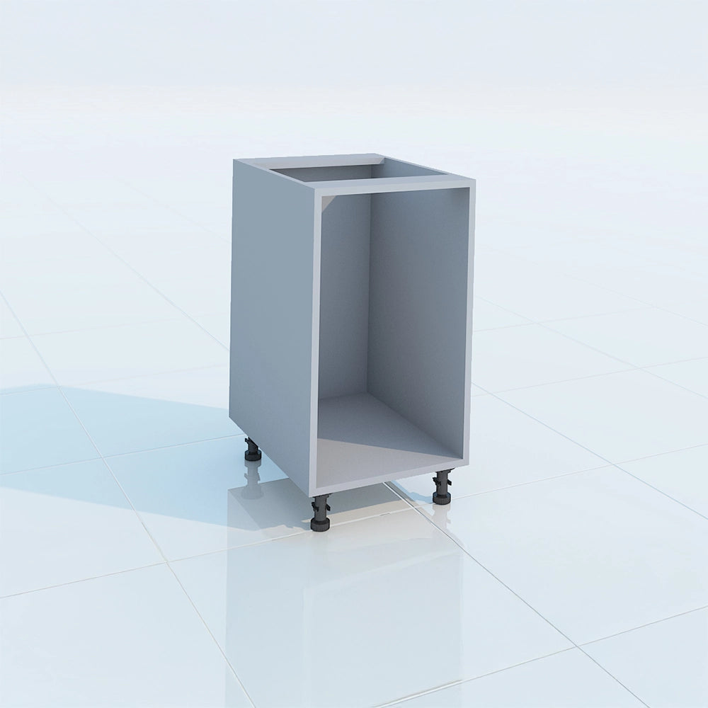18mm thick HDMR laminated boxes with moisture-resistant lamination, supported by heavy-duty powder-coated legs. Pre-drilled for easy shelf fitting and door hardware.