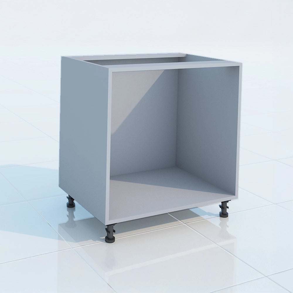 18mm thick HDMR laminated boxes with moisture-resistant lamination, supported by heavy-duty powder-coated legs. Pre-drilled for easy shelf fitting and door hardware.