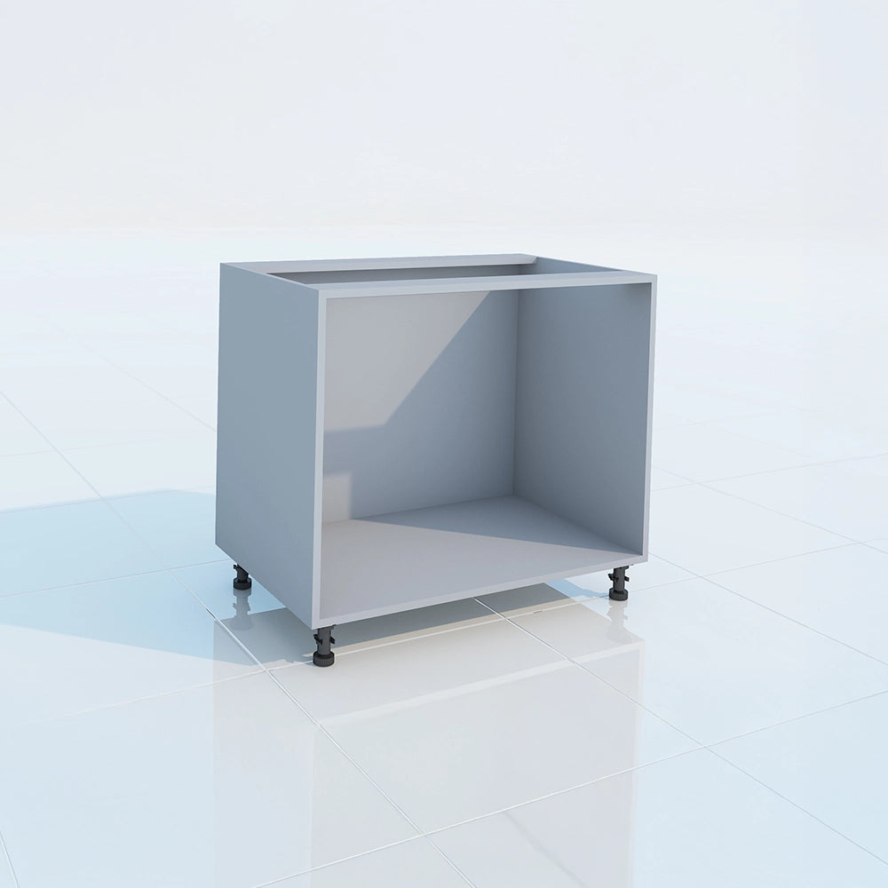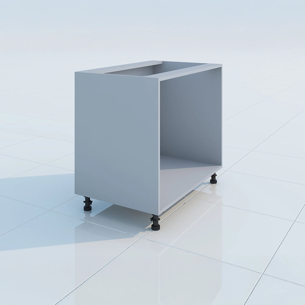 18mm thick HDMR laminated boxes with moisture-resistant lamination, supported by heavy-duty powder-coated legs. Pre-drilled for easy shelf fitting and door hardware.